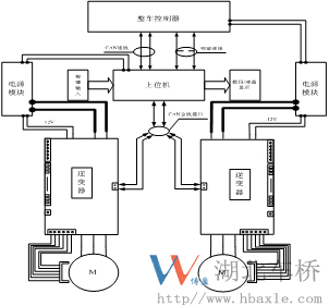 圖2 低地板門式輪邊電動(dòng)車橋電氣控制結(jié)構(gòu)示意圖