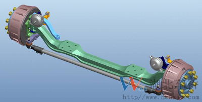 1.前軸為整體鍛造結構,采用加強設計,承載能力強; 2.輪距、板簧距可靈活調整;3.車輪輪輞定位方式可采用球面定位或止口定位