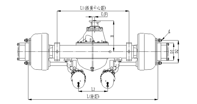 產(chǎn)品特點:1.橋殼加強(qiáng)型設(shè)計,承載能力強(qiáng);2.車輪輪輞定位方式可采用球面定位或止口定位;3.板簧距與輪距可以調(diào)整